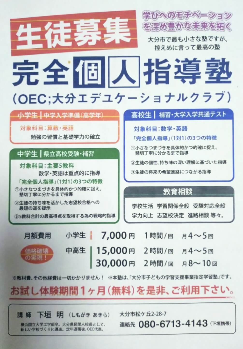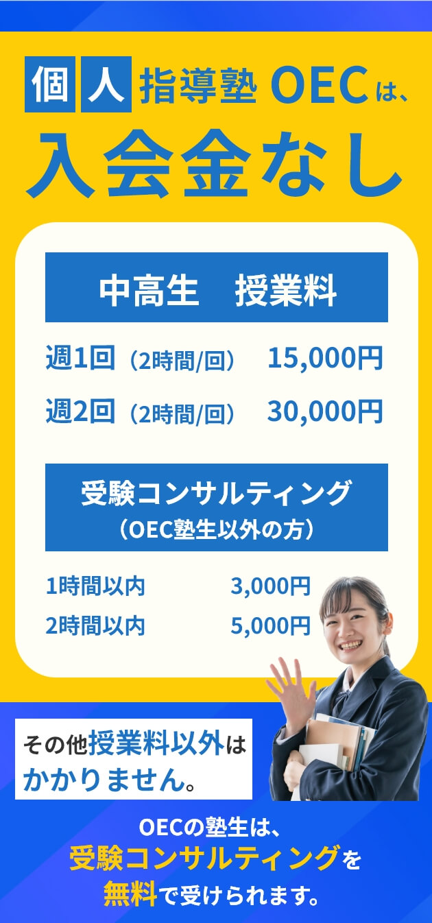 ※OEC塾生には受験コンサルティング料は一切かかりません。(推薦入試対策は除く)